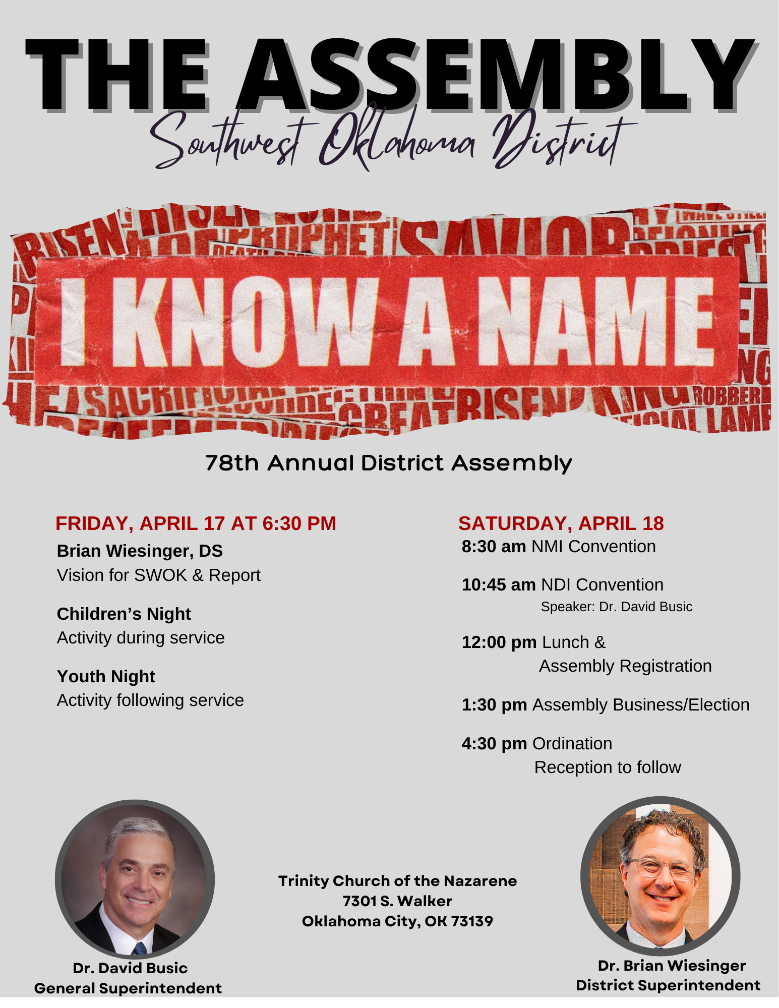 Welcome to SWOK - The Southwest Oklahoma District of the Church of the Nazarene. We are a group of churches in central and southwest Oklahoma who long for people to experience the life transforming power of Jesus Christ. We are committed to the mission of helping people become faithful followers of Jesus - to be Christlike disciples. Everything we do is intended to extend the redeeming and restoring love of God, through the power of the Holy Spirit, to all people. We do this by encouraging, supporting, resourcing, enriching and equipping pastors and parishioners to be effective ministers in and through every local church. Our commitment is furthered by investing in Children and Youth Ministries, Compassionate Ministries, Campus Ministries, and Camping Ministries ... to further the mission of Jesus in the world.
